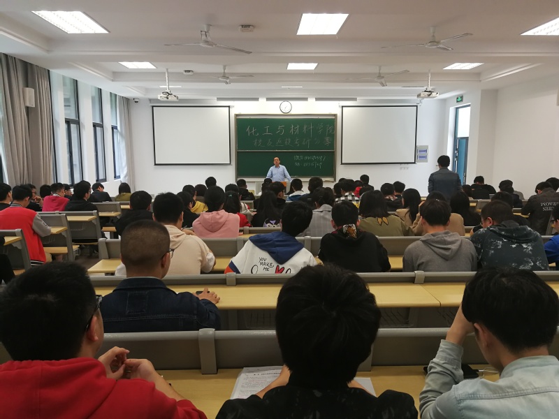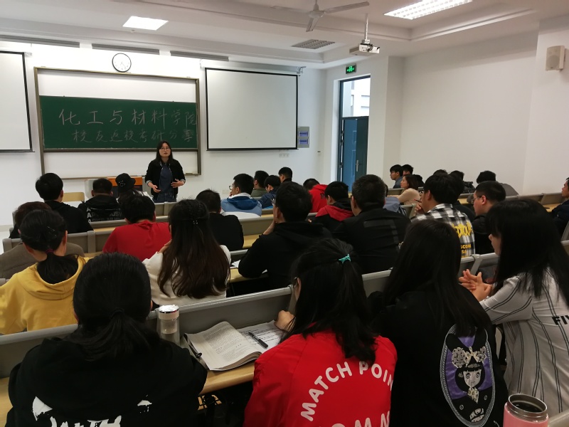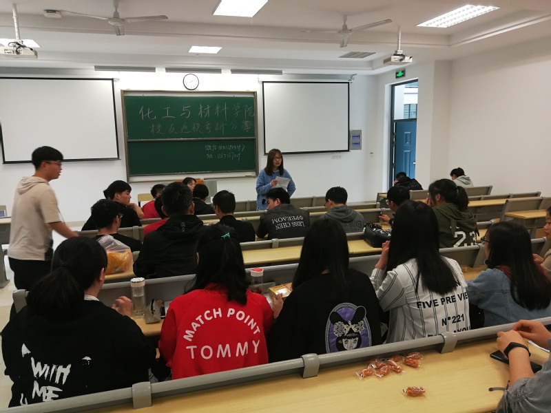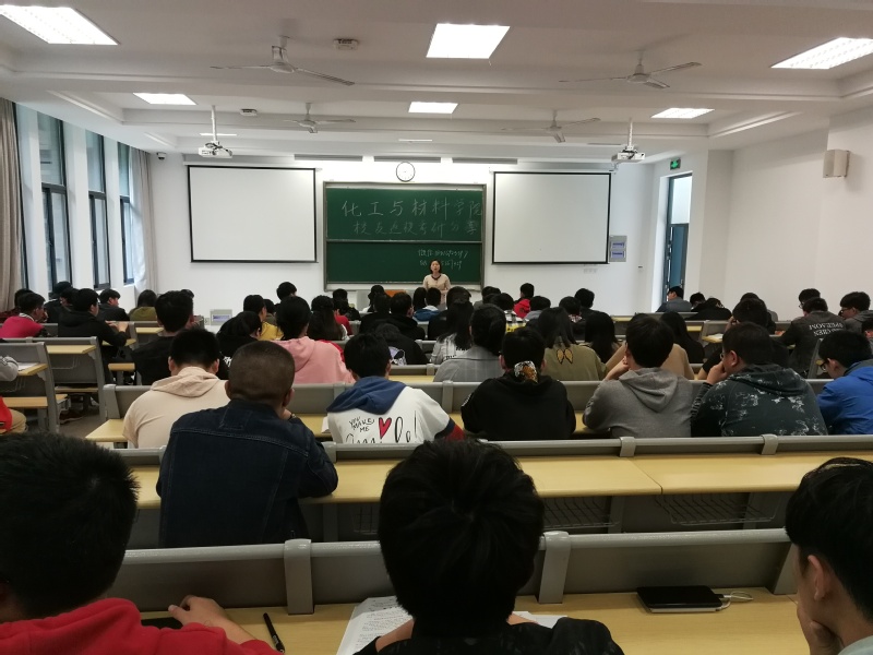 江苏大学博士研究生王吉祥(09化Y1班)、沈洪强(09化Y1班),苏州大学硕士研究生钱琳璐(12化Y),华东理工大学硕士研究生高维维(14应化),为公司2016级全体在校同学分享了他们的备考经验及现在的读研生活。接着,化工系资深考研指导教师陈建欣副教授进行了现场考研动员,范钧翔等5名今年考上研究生的2019级应届毕业生也分享了各自的考研心路。