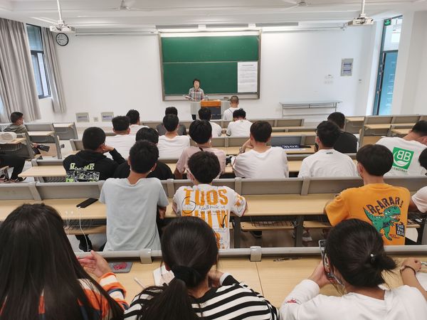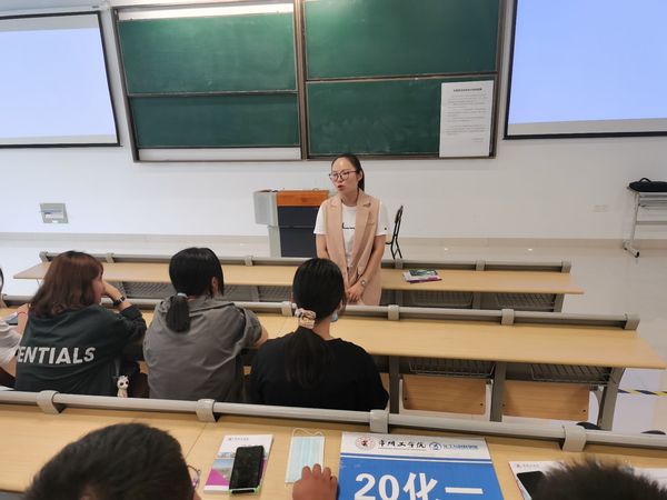 接下来,由员工党支部书记和专业系主任对新生进行了思想引领和专业启蒙教育。员工第一党支部书记孙潇楠以“看人,就是看气质”为主题,强调了同学们要有爱国气质,爱校气质和爱专业气质;教工第一党支部书记刘宝亮介绍了化学工程与工艺的专业概况和基本学习方法及要求。另一边,员工第二党支部书记许鹏老师为应化系员工展开了思想引领主题教育,他希望每一位新生在大学四年里能培养自己的各种能力,学到知识、学会生活、学会做人;应化系系主任陈小卉老师向同学们介绍了应用化学专业的学习方向和就业前景,希望新生可以认真学习,把握机会,勇攀高峰!
