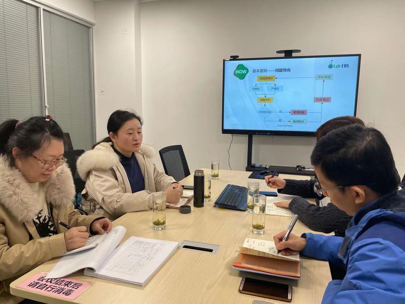 吴泽颖先行介绍了在编教材的内容和特色,以及项目推广的重要意义。该中心国家化学品分类鉴别重点实验室主任王松红及EHS事业部部长吴星星肯定了实验室风险管理进教材这一理念,并对危险源识别及风险评估等概念及实施方法进行了详细介绍,对教材内风险评估及控制部分的编撰具有重要指导作用。