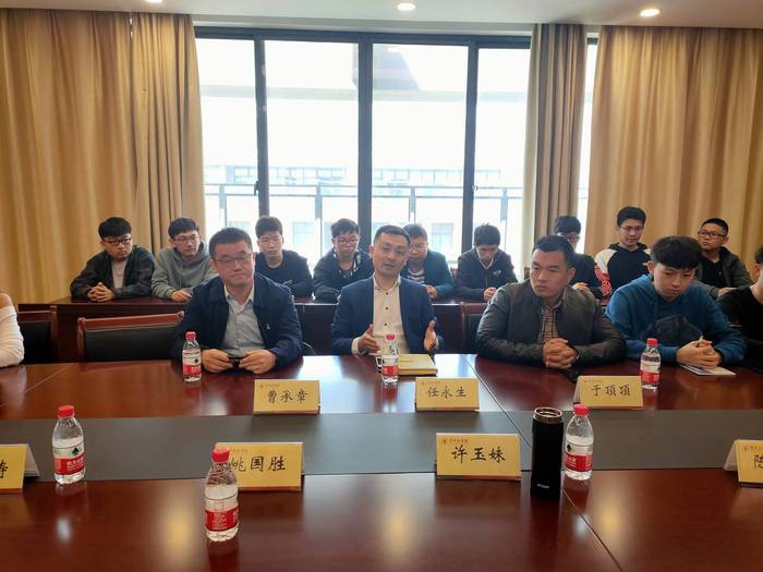 会上,院员工会会长任永生介绍其创办常州市力仁医药科技有限公司的心路历程及目前公司主营业务,分享了当今社会与工作岗位对人才需求与品质要求,并欢迎同学们到公司进行实习与工作。随后,院员工会副会长、常州瑞兰复合材料科技有限公司总经理曹承章围绕“吃苦、坚持、情怀”三个关键词展开交流,希望同学们寻找初心,要明白读大学的初心、学习本专业的初心,从而找到人生路上的初心。最后,院员工会副会长、常州畅通化工总经理于顶顶以非常幽默风趣的语言与大家畅谈“踏实”与“吃苦”的内涵所在。