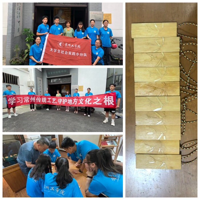 2022年6月27日,在化工与材料公司党委副书记万莹老师的带领下,暑期传统文化实践团队来到了常州非物质文化遗产保护地——白氏留青竹刻馆参观学习。在白氏传承人白雪飞老师的悉心讲解与指导下,实践团队一同参观了白氏留青竹刻的馆藏作品,并初步尝试了留青竹刻的切线、铲底、刮底等制作步骤,切身体会到了给竹片做“减法”的不易,深刻体会到白雪飞父女为传承留青竹刻的信念和坚持。