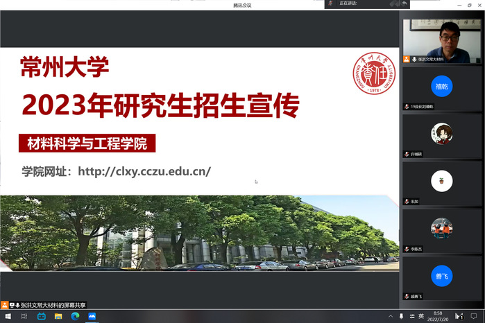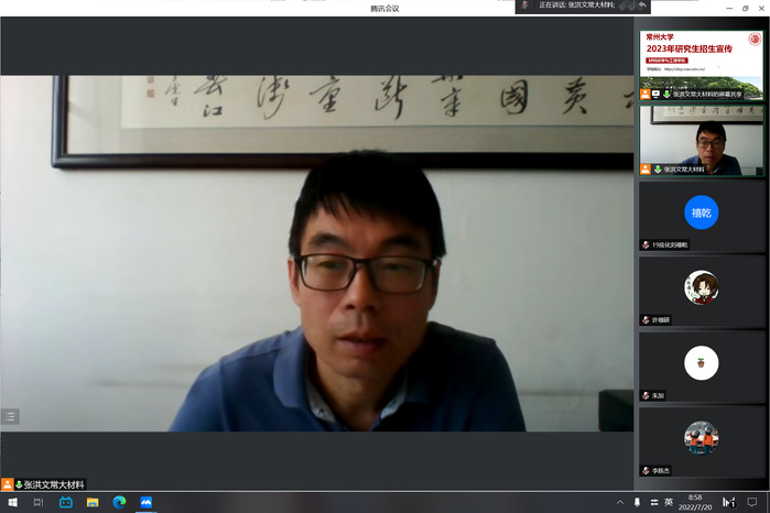 7月20日上午,bevictor1946韦德官网在腾讯会议上举办研究生招生宣讲会,讲座由常州大学材料科学与工程公司经理张洪文教授主讲,公司团委副书记朱加主持,公司薛小强教授及2019级、2020级有报考意向的员工参加会议。