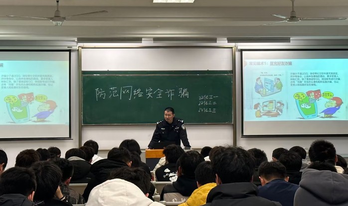大会上,宣讲员结合典型案例重点讲解了常见的校园诈骗方式,特别是针对新生的新型诈骗手段,同时向大家传授了防诈骗策略,提醒同学们要时刻保持警惕,做到不听不信不转账,呼吁大家认真学习防诈知识,增强防范意识,提高防诈能力。