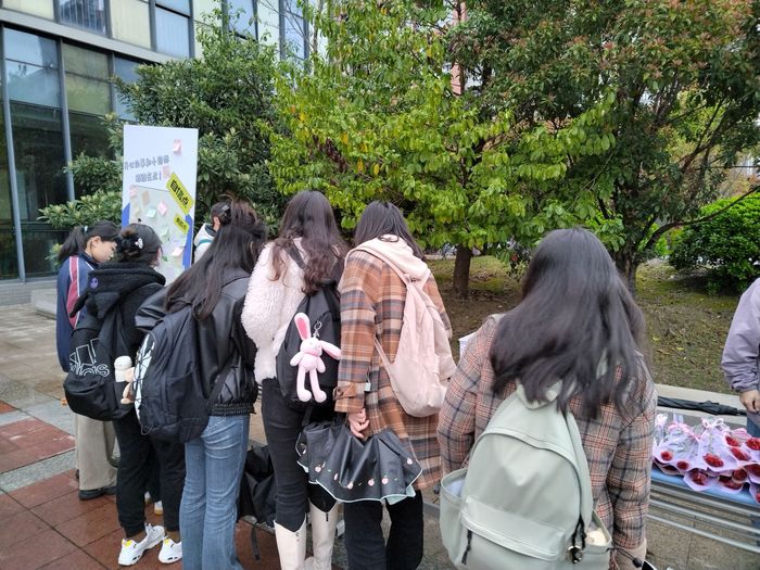 活动中,竖有一个人形立牌,上面收集粘贴了同学们的烦恼与忧愁,路过的同学们看到纸条,撕掉烦恼,再将自己如何调整心态、自己的目标愿景粘贴上去。活动现场气氛热烈,热闹非凡,互动后同学们还可以领取一朵香气宜人的康乃馨。