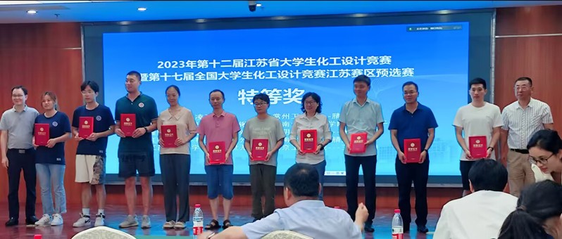 7月21日至25日,由江苏省化学化工学会、江苏省化工行业协会主办的第十二届江苏省老员工化工设计竞赛在盐城工公司举行。本次大赛由来自全省29所本科院校的1400多名同学组成的共计291支团队参赛。bevictor1946韦德官网化学工程与工艺专业张珉熙、林瑶、何滢、付杨洋、代可昊等五位同学组成的“腈妙绝伦”团队(指导老师:蒋夫花、李殷、张欢、魏雪姣、吴泽颖)以全省前十的优异成绩进入省赛决赛,与南京理工大学、江南大学、南京工业大学等高校同场竞技。在比赛过程中,公司代表队不畏强手,勇于拼搏,其作品“上海东庚化工年产15万吨己二腈项目”获得江苏省化工设计竞赛最高奖项特等奖。这是公司首次在江苏省老员工化工设计竞赛中获得最高奖项,实现公司在该竞赛上的历史性突破!