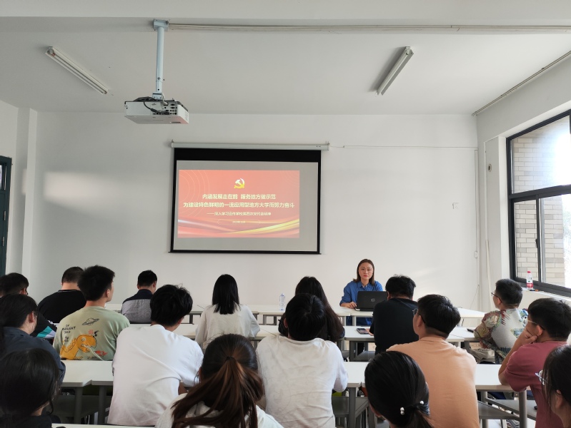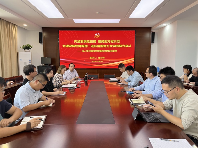 储云峰、陆孟以《内涵发展走在前 服务地方做示范——为建设特色鲜明的一流应用型地方大学而努力奋斗》为主题,从公司第三次党代会以来取得的主要成绩、新发展阶段的使命与奋斗目标、谱写建设特色鲜明的一流应用型地方大学新篇章、持续推进新时代党的建设新的伟大工程等四个方面宣讲公司第四次党代会精神。