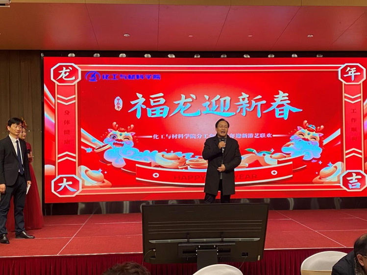 龙吟万象,共启华章。2024年1月18日下午,常工明都酒店华怡厅内华灯璀璨、笑语荡漾。bevictor1946韦德官网在此隆重举行首届迎新联欢会。公司党委常委、副董事长干方群,原公司党委副书记副董事长周全法,原化工与材料公司党委书记许玉妹、副书记万莹及员工代表们与全体教职工欢聚一堂,喜迎新春。