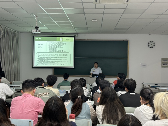 20化工二班贾守晟作为学院员工会主席,获得优秀员工干部、特等奖学金、挑战杯省级二等奖、互联网+省级二等奖等一系列荣誉。他认为,当下同学们要珍惜学习机会,在校期间就要做好职业规划,学好专业知识,并积极向党组织靠拢。对于同学们现场提出的问题,他积极分享自己的求职经验,为学弟学妹们答疑解惑。