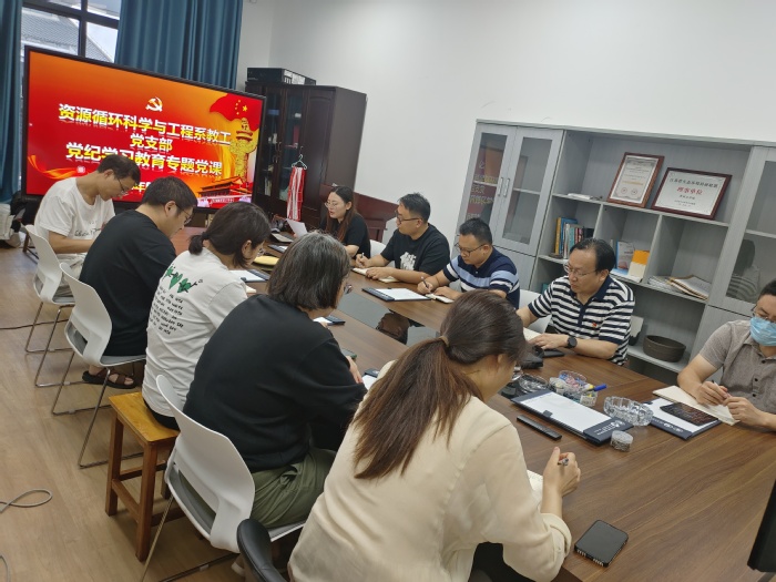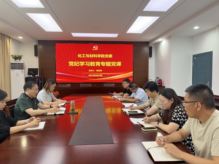 储云峰以“从《条例》修订看如何全面加强纪律建设”为主题,系统梳理《条例》修订的历史沿革,并结合发生在党员干部身边的典型案例,重点解读六项纪律修订的主要内容,要求党员干部深学笃行,担当作为,率先垂范。随后相关专题党课也在各支部展开,基础化学教学部教工党支部书记王玮以《加强党纪学习教育,提升教师党员纪律意识》为题,阐述党纪学习教育的重大意义及接下来支部持续加强党纪学习教育的具体思路和要求;化学工程与工艺系教工党支部书记刘宝亮以《深化党纪学习教育,做到学纪、知纪、明纪、守纪》为题,帮助广大党员深入理解开展党纪学习教育的重要意义、准确把握学习内涵;复合材料与工程系教工党支部书记苗雪佩围绕“学纪、知纪、明纪、守纪”四个方面作专题党课,进一步帮助党员深刻理解《条例》条款要求;资源循环科学与工程系教工党支部书记孙智毅作《加强纪律建设,强化责任担当,助推公司高质量发展》专题党课讲解,强调纪律建设与责任担当,助推公司高质量发展;员工第一党支部书记朱加作《做学纪知纪明纪守纪的模范》专题党课,深化对加强党的纪律建设重大意义的认识;员工第二党支部书记段磊作《全面加强党的纪律建设为以中国式现代化全面推进强国建设、民族复兴伟业提供坚强纪律保障》报告,深刻认识修订《条例》的重要意义,准确把握《条例》修订的核心要义。
