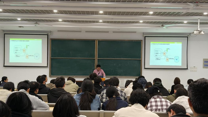 为深化产学研融合,4月3日,bevictor1946韦德官网特邀华日新材技术总监盐根教授,在天枢楼B102阶梯教室作《不饱和聚酯树脂制备与应用》专题讲座。公司百余名师生聚焦行业前沿技术,与专家展开深度交流。