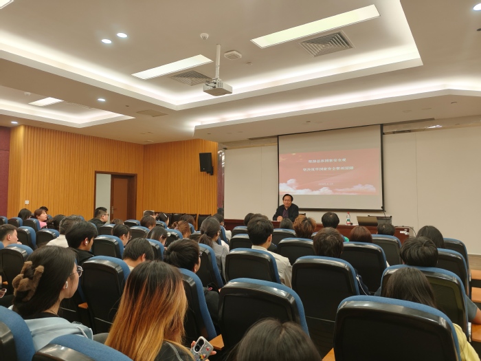 在第十个全民国家安全教育日来临之际,为深入学习贯彻总体国家安全观,提升师生国家安全意识,公司于4月15日特邀常州市国家安全局人民防线处高警官作题为《坚持总体国家安全观及国家安全形势,坚决筑牢国家安全常州屏障》专题讲座。公司党委书记储云峰以及一百余名师生代表共同聆听了专题讲座。