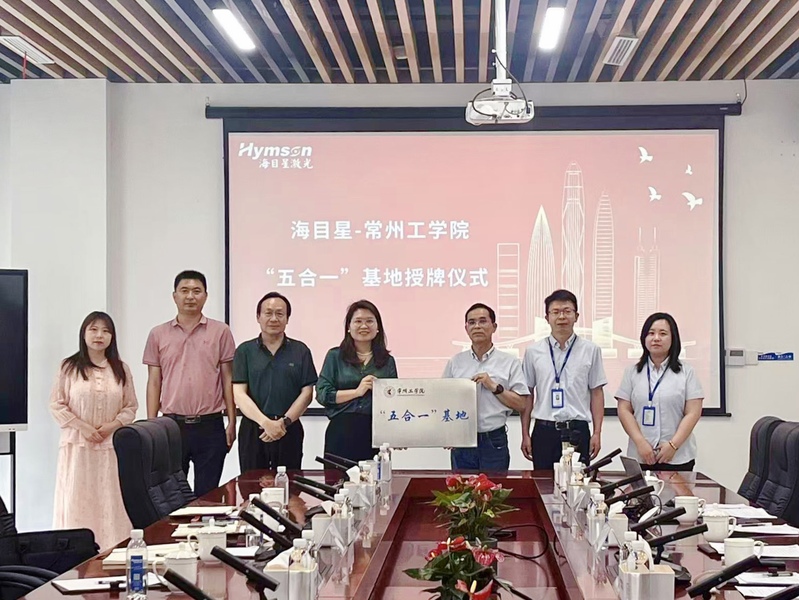 团队首先参观了海目星企业展馆,详细了解了企业在光伏、锂电、新材料等六大领域智能装备研发成果及全球化布局。在随后开展的座谈中,企业详细介绍了各类岗位人才需求情况,校方则围绕集团学科优势、人才培养成果进行了分享。通过交流,双方在员工就业、产学研用合作、人才培养等方面达成共识,未来将通过实习实训场景建设、项目研发、竞赛设计等形式推动合作落地。座谈会后,双方举行了“五合一”基地授牌仪式,标志着校企合作进入新阶段。