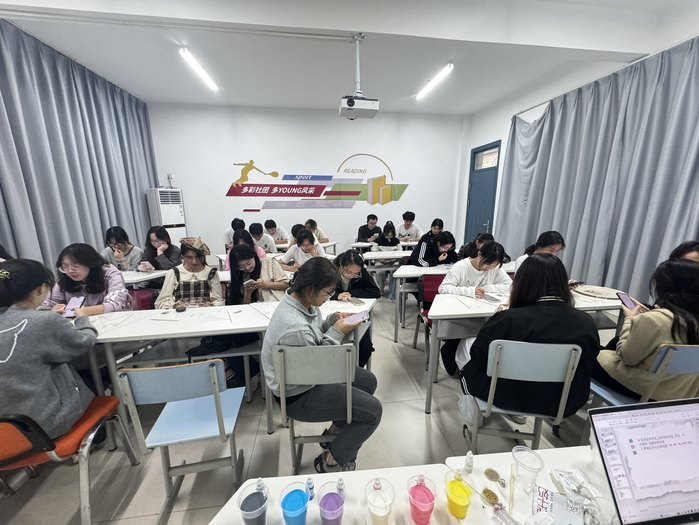 活动伊始,主持人介绍了“水母烟花”的实验原理,将抽象的课本概念转化为即将在烧杯中上演的奇幻景象的“剧本”。通过深入浅出的讲解,同学们清晰认识到,自己即将亲手培育的每一只 “化学水母”,其灵动舞动的轨迹背后,都与化工领域的液-液萃取、分层流反应器等一脉相承,共享着相同的科学内核,让大家直观感受到基础化学知识与前沿工业技术的紧密关联。
